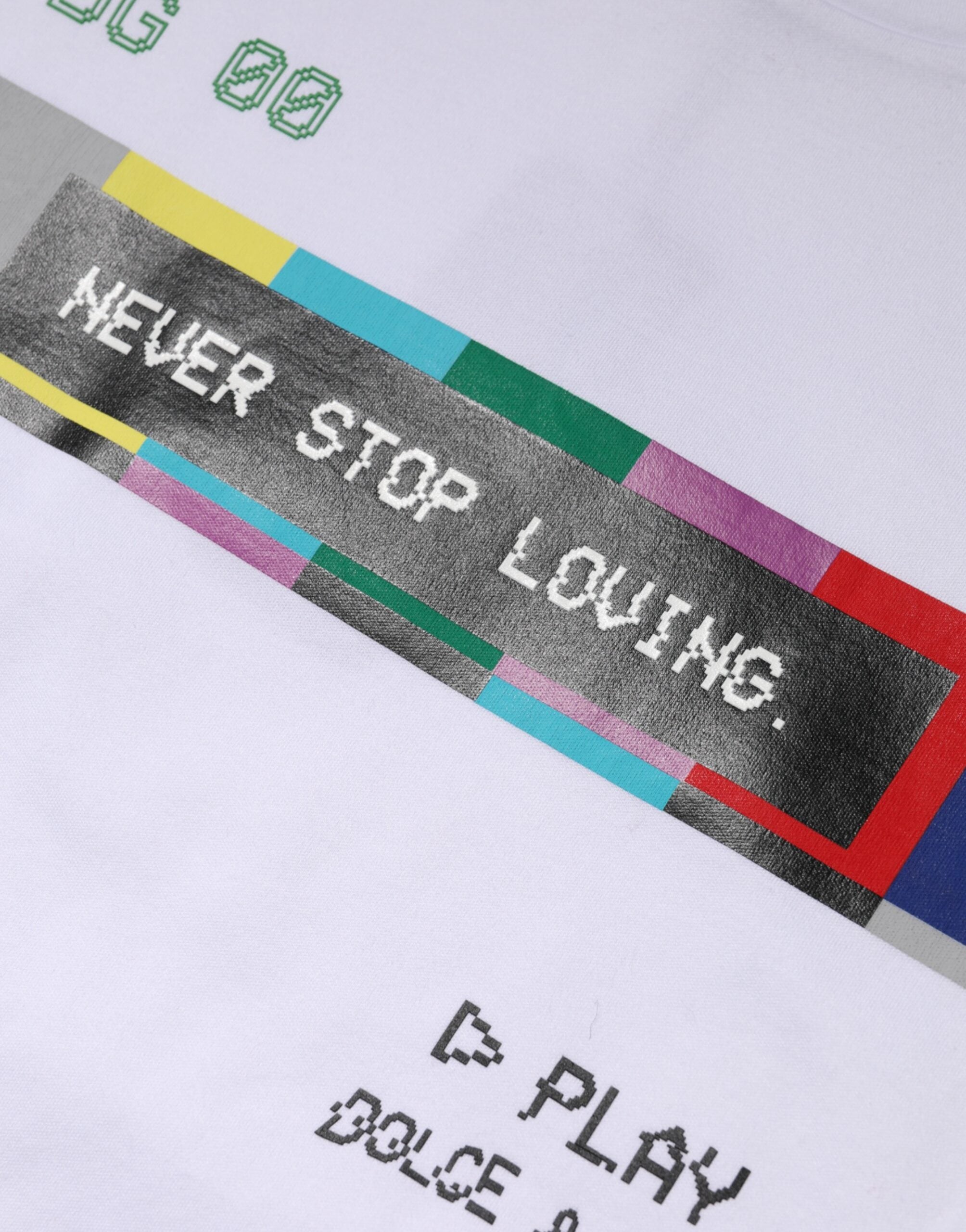 Gorgeous brand new, 100% Authentic Dolce & Gabbana crew neck t-shirt crafted from cotton with NEVER SROP LOVING PLAY DG logo print.
